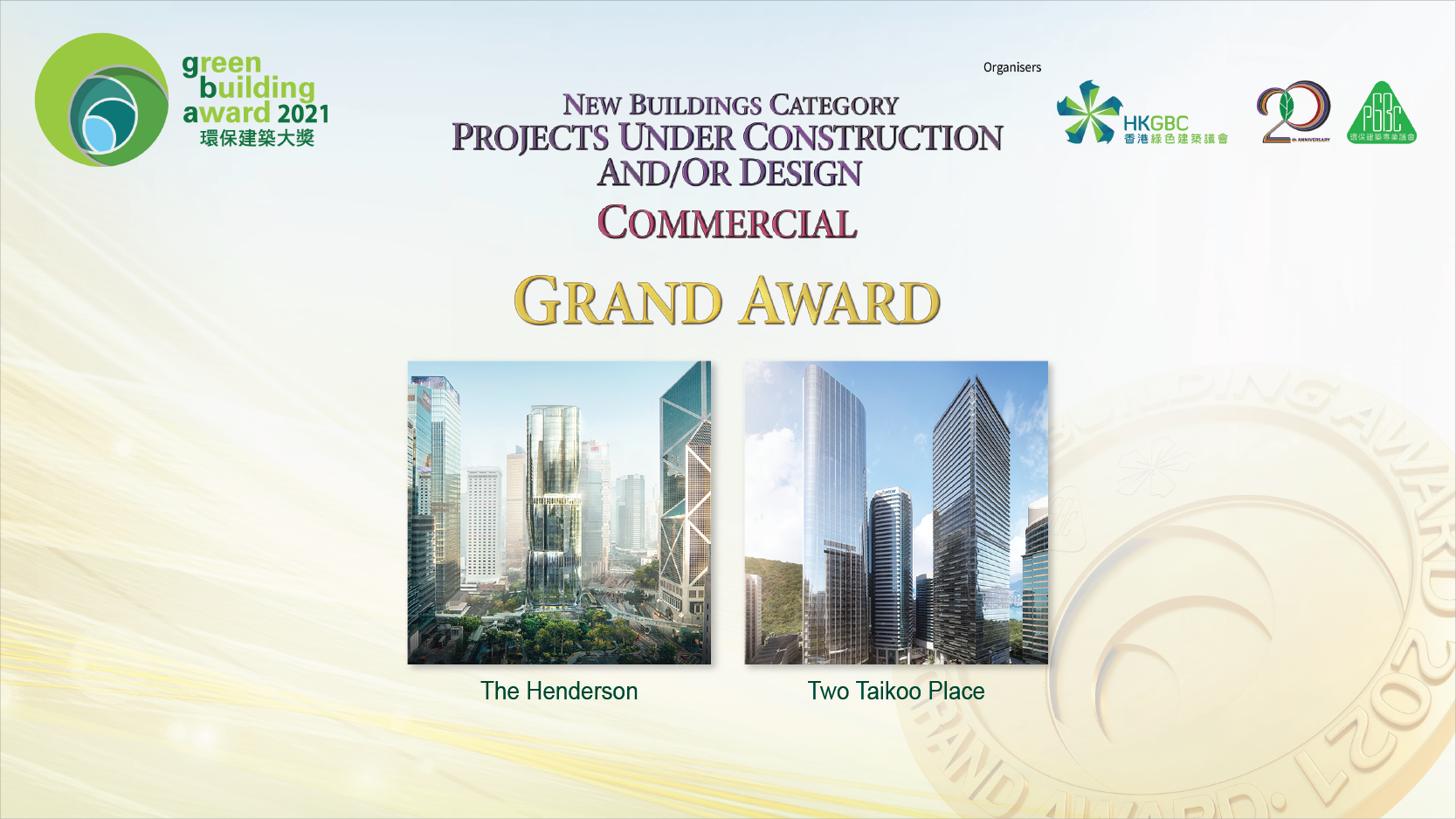 With the theme of ‘Shaping Liveability • Excellence in Sustainable Built Environment’, the award presentation of Green Building Award 2021 (GBA 2021) jointly organised by the Hong Kong Green Building Council (HKGBC) and the Professional Green Building Council (PGBC) was held on 28 April 2022 with over 700 guests attending online to celebrate with all the Award Winners!